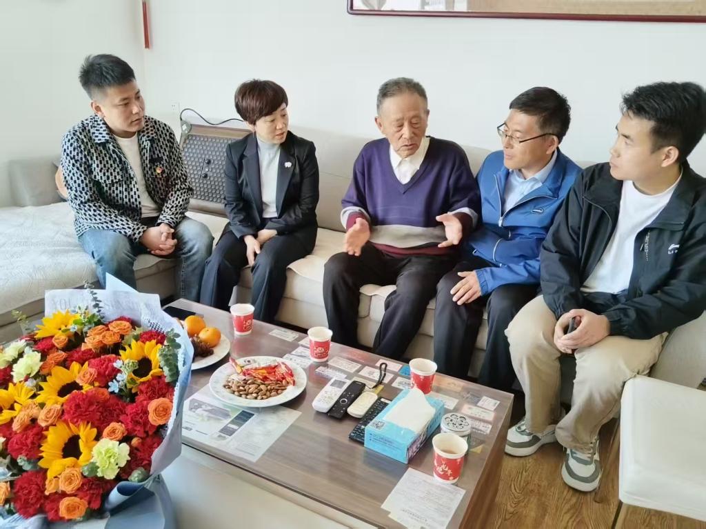 年逾八旬的朱老师精神矍铄,热情迎接来访师生。张春胜细心询问了朱老师的身体及生活情况,介绍了近年来公司教学科研的发展情况和取得的成绩。朱老师动情地说:"感谢公司始终惦记着我们这些老同志,感谢老干部处的周到安排,也感谢同学们来看望我!"