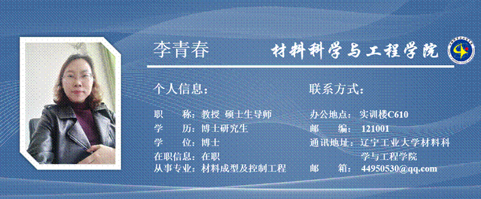 李青春,女,1972年7月生,博士,教授,硕士生导师。现任3044永利集团副经理,中国材料学会凝固科学与技术分会理事,辽宁省铸造协会理事,辽宁省铸造学会秘书长,锦州市功能材料专业技术创新中心。主要研究方向为“控制凝固理论与新技术”,目前主攻超纯金属、3D打印用金属粉末、耐磨复合材料、金属精密成型技术等研究。