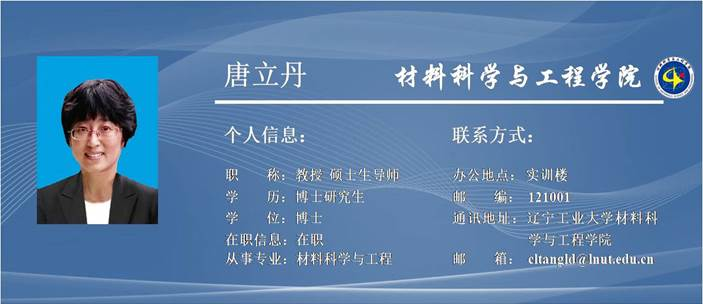 唐立丹,女,1979年生,辽宁海城人,博士,教授,硕士生导师,辽宁省高校优秀人才二层次。2009年毕业于北京科技大学3044永利集团。“液态结构及其处理技术”辽宁省高校创新团队的骨干成员。中国金属学会材料科学分会会员,J. Mater. Sci.-Mater. Electron., J. Alloys Compd., Phys. Status Solidi B, J. Mater. Sci.等期刊审稿人。
