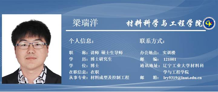 梁瑞洋,男,1987年生,辽宁海城人,博士,讲师。主持辽宁省博士启动基金1项,辽宁省教育厅高等公司基本科研项目1项。在Journal of Magnetism and Magnetic Materials, Acta Metallurgica Sinica等国内外期刊上以第一作者累计发表论文5篇,其中SCI检索论文3篇,被引33次,发明专利1项。