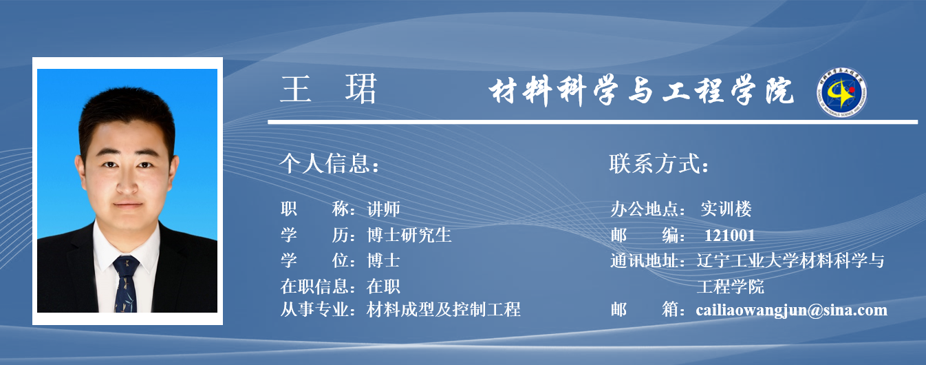 王珺,男,1991年生,辽宁抚顺人,博士,内聘副教授,研究生导师。博士就读于北京科技大学新材料技术研究院。主持和参与国家自然科学基金3项、国家重点研发计划2项和中央军委装备发展部重点项目等多项科研课题。目前已在Journal of Materials Processing Technology、International Journal of Minerals, Metallurgy and Materials、Metals和工程科学学报等期刊发表检索论文10篇,其中Top论文2篇。