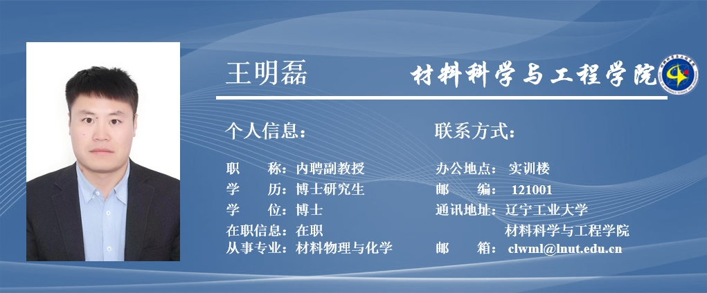 王明磊,男,1990年生,辽宁朝阳人,博士研究生,研究生导师。博士就读于大连理工大学3044永利集团。主持和参与国家高技术研究发展技术(“863计划”)项目、中航航发北京航空材料研究院项目、辽宁省菱镁矿高值利用工程研究中心项目、校博士启动基金、横向课题等项目6项。在Diamond and Related Materials、Rare Metal Materials And Engineering、Plasma Science and Technology、Journal of Materials Research and Technology、 Journal of Inorganic Materials等期刊发表SCI检索论文6篇。