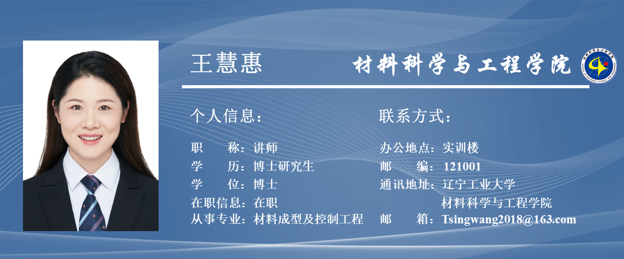 王慧惠,女,1993年生,中共党员,博士,内聘副教授,研究生导师。博士就读于中南大学冶金与环境公司,主要从事基于亚快速凝固的无取向硅钢、高强钢、稀土钢等性能研究。博士期间参与国家级和校企联合科研项目5项。目前已在Journal of Rare Earths、Journal of Iron and Steel Research International、Journal of Sustainable Metallurgy和Materials Letters等国内外学术期刊上发表多篇SCI论文,相关授权发明专利3项。
