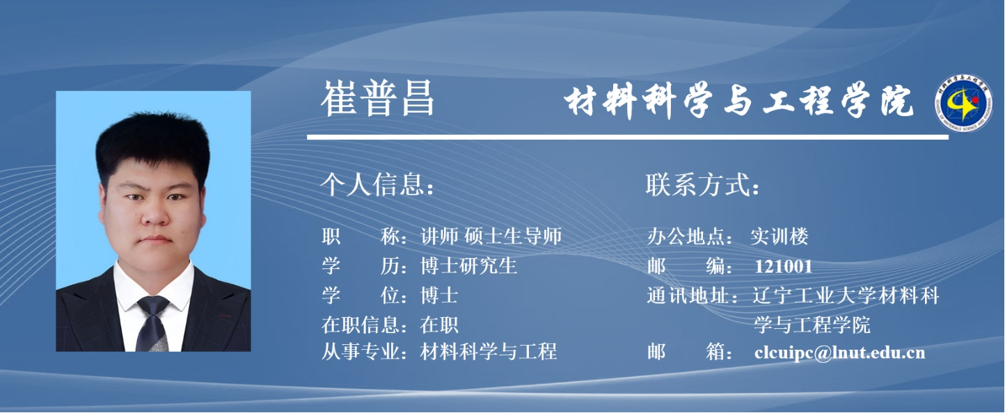 崔普昌,男,1995年生,辽宁海城人,博士,硕士生导师。毕业于哈尔滨工业大学3044永利集团。主要从事多主元合金设计、表征与应用、材料机器学习与多尺度计算模拟和材料腐蚀与防护等方向的研究。主持和参与辽宁省教育厅项目2项,3044永利集团博士科研启动项目1项,企业横向课题2项等。至今,在Corrosion Science、 Materials Science and Engineering: A、 Journal of Alloys and Compounds与Intermetallics等国内外期刊发表论文10余篇,其中第一作者9篇,SCI被引用百余次。参编教材1部。