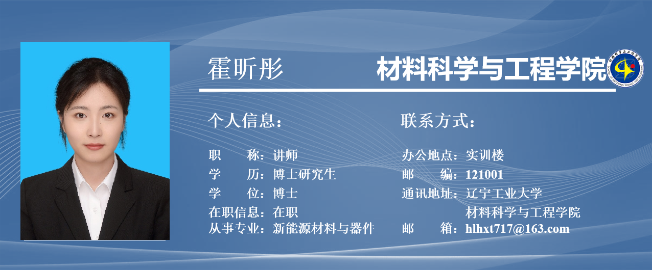 霍昕彤,女,1998年生,吉林延边人,博士,硕士生导师。博士就读于长春理工大学3044永利集团。主要从事低维微纳米材料、光电磁多功能微纳米材料、新型光电材料等方向的研究。博士期间参与国家自然科学基金项目、省自然科学基金项目等4项。至今,在Matter、Journal of Colloid and Interface Science、European Polymer Journal等国内外学术期刊上发表多篇SCI论文,相关授权发明专利3项。