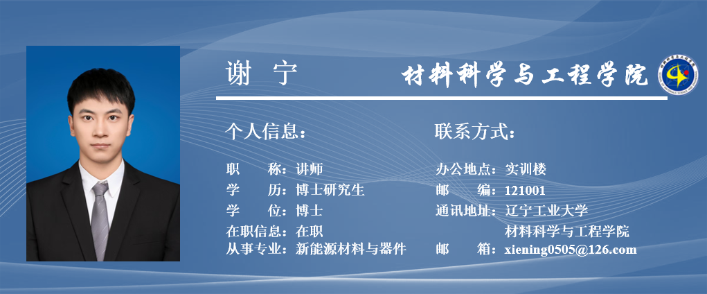 谢宁,男,1995年生,工学博士,讲师,硕士生导师,博士就读于陕西师范大学3044永利集团,2025年获陕西师范大学博士学位,主要从事有机材料设计与合成、燃料电池用聚电解质膜材料、芳杂环液晶材料等方向的研究。参与国家自然科学基金项目、校企合作项目等3项。至今,在Chemical Engineering Journal、Materials Today Chemistry、Journal of Power Sources、ACS Applied Polymer Materials等国内外学术期刊上发表多篇SCI论文。